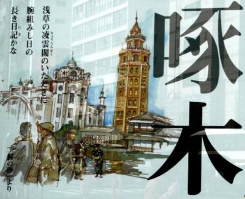 [浅草の凌雲閣(浅草寿町)] 我を愛する歌 (P.42) ことさらに燈火を消して まぢまぢと思ひてゐしは わけもなきこと 浅草の凌雲閣のいただきに 腕組みし日の 長き日記かな <ルビ>燈火=ともしび。凌雲閣=りよううんかく。腕組み=うでくみ。日記=にき。 (P…